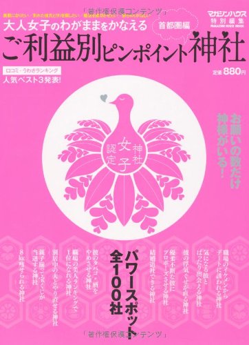 「お願いの数だけ神様がいる!」というコピーで、発売以来、好評を博しているムック、それが『ご利益別ピンポイント神社』。同書では、首都圏の100のパワースポットが紹介されています。この本のおもしろいところは、「大人女子のわがままをかなえる」ため、願い事の種類による「神社ランキング」を発表している点。そのうえ、願い事が細かく分類されています。