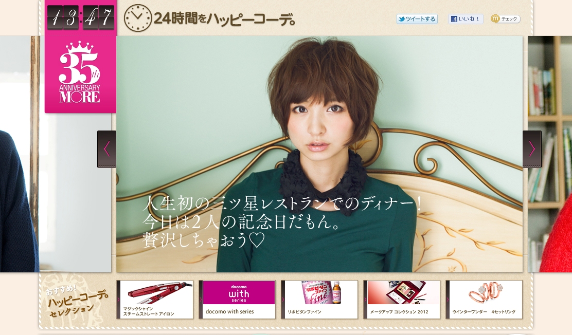 さらには、「ハッピータイムPhotoキャンペーン」として、12月10日(月)までにサイトに写真を投稿した人の中から、SUZUKIの新型ワゴンRなどの豪華賞品が当たるキャンペーンを実施中。他にも賞金がもらえるキャンペーンも行っているので、『MORE』と一緒に24時間のハッピーをつくってみてはいかがでしょうか。