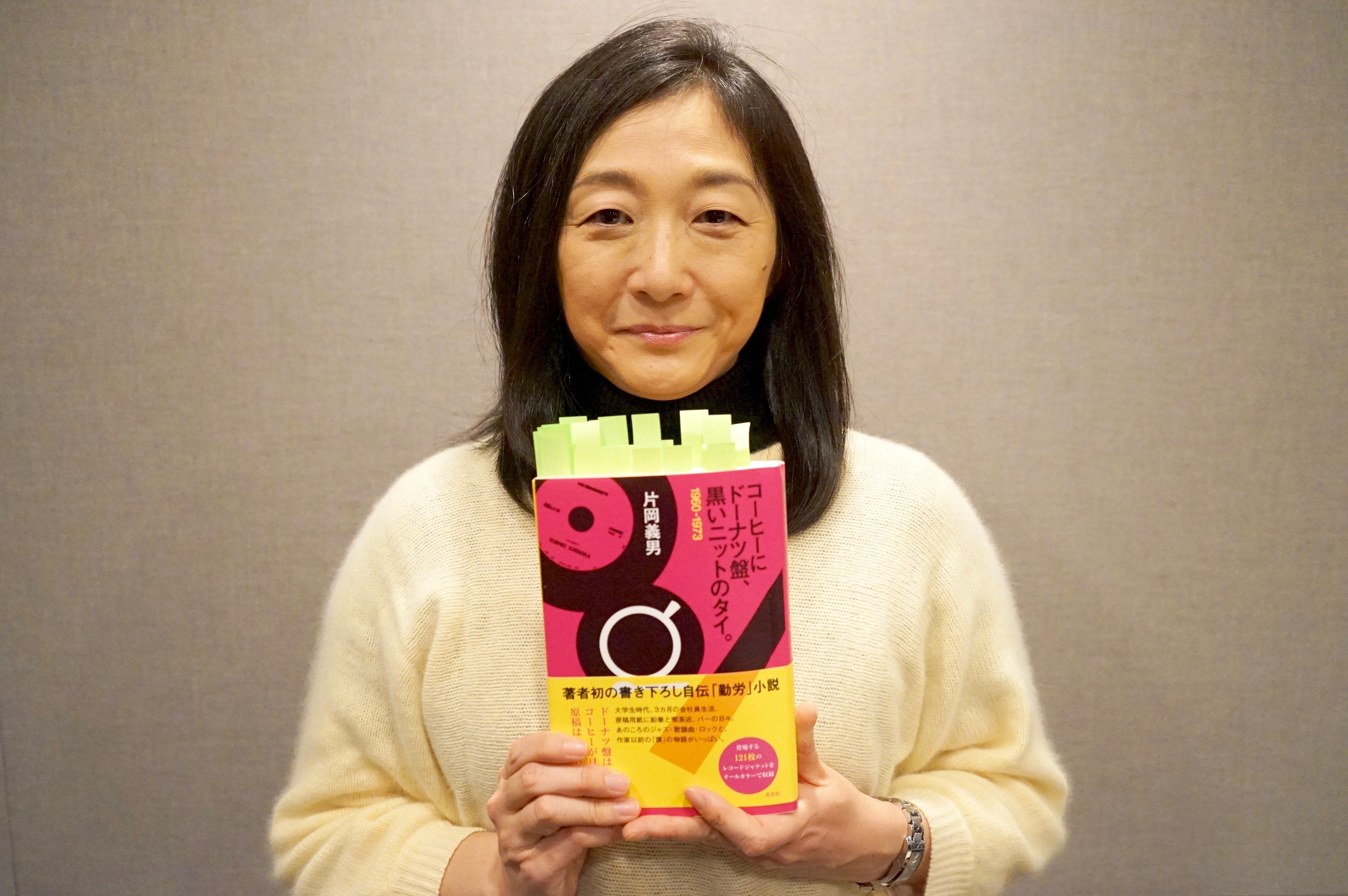 「2014年に『翻訳問答』という本を一緒に出版した片岡義男さんの短編集『コーヒーにドーナツ盤、黒いニットのタイ。』という小説です。片岡さんとっては初の自伝小説集になります。早稲田大学時代、卒業してたった3カ月だけ勤めた貿易会社での出来事、その後の作家としての活動を綴った内容となっており、全部で44編の短編から構成されています。時代でいえば1960年頃から1973年くらいまでのお話。片岡さんはものすごく音楽に詳しく、大変な音楽愛好家なんですが、彼の大好きな音楽が各編に登場するんですよ。それはアメリカンポップスから日本の江利チエミさんだとか北島三郎さんといった具合に、本当に幅広い範囲の音楽をカバーしていて。そういった音楽が短編の中にちらちらっと出てくるというのが、またすごくオツなところです」