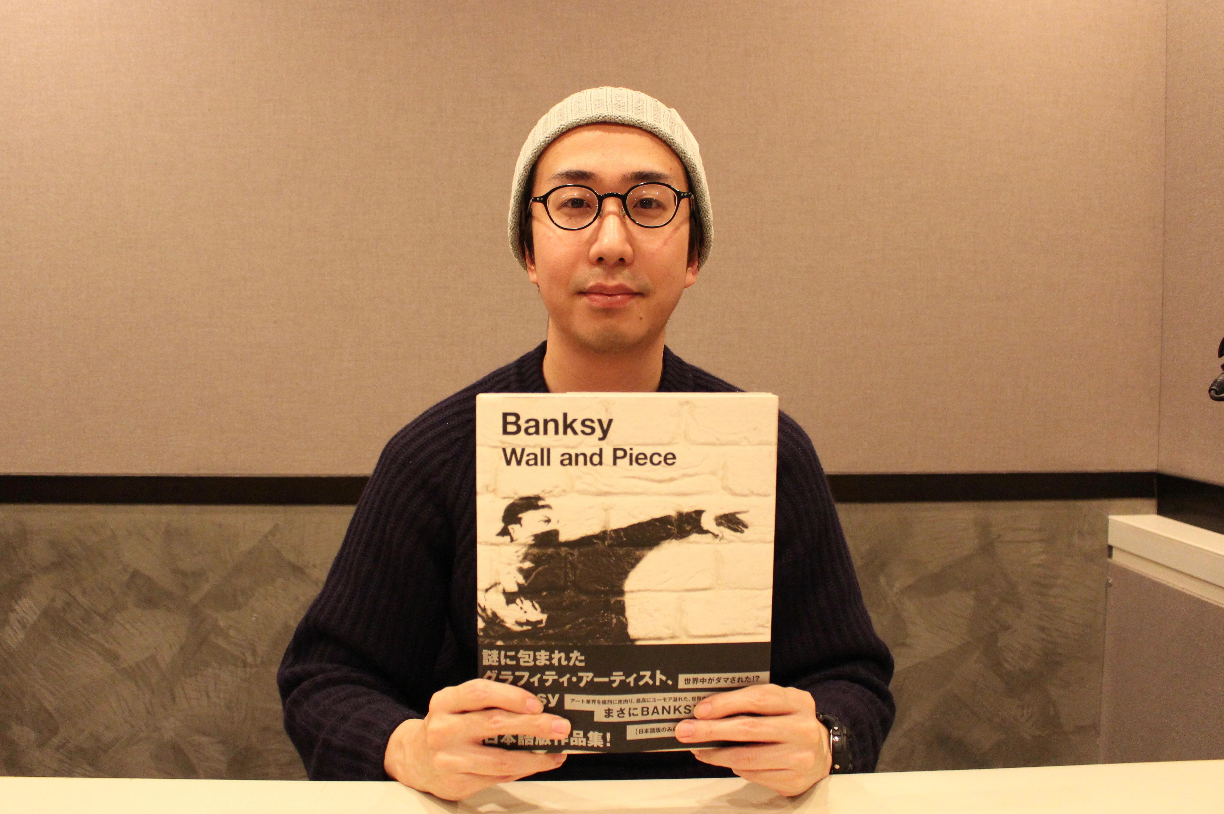 「彼の作品は視覚的にもかっこよくて魅力的で、この作品にはどういう意味があるんだろうって知りたくなるような作品ばかりなんです。彼はグラフィティアーティストを一番有名にした人物といっても過言ではないと思います。そんな彼の作品集で『バンクシーウォールアンドピース』(BANKSY Wall and Piece)という作品集があるんです。この本の何が良いかっていうと、当時バンクシーが出した声明が載っているんです。まず僕が一番好きな彼のエピソードを紹介すると、あの世界的に有名なルーブル美術館に、自分が描いたモナ・リザのパロディ作品を勝手に持ち込んでさらに展示して逃げるっていう、最高にトリッキーなことをしているんです。なぜそんなことをしたのかが彼が出した声明の中に載っていて、一つは『美術館は持ち出されることには警戒していても、持ち込むことにはほとんど警戒していない』というようなことを言っていて、その盲点に気付いたからやってみたという、子どもみたいな無邪気さがあるんですよね。僕はそんなバンクシーにリスペクトを込めて『左ききのエレン』の中で、当時のMoMAを舞台にバンクシーを登場させています」