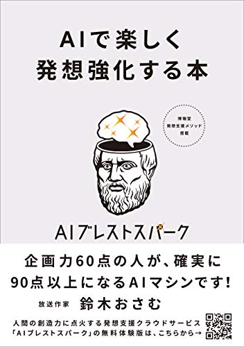 そんな皆さんにおすすめしたいのが、人間の創造力を強化するために開発された発想支援クラウドサービス「AIブレストスパーク」。誰もが簡単にプロの発想法を再現できるというもので、これには放送作家の鈴木おさむさんも「企画力60点の人が、確実に90点以上になるAIマシン」と絶賛するほど。そして、この「AIブレストパーク」のフル活用法を解説した一冊が、本書『AIで楽しく発想強化する本 AIブレストスパーク フル活用のための55のコツ』となります。